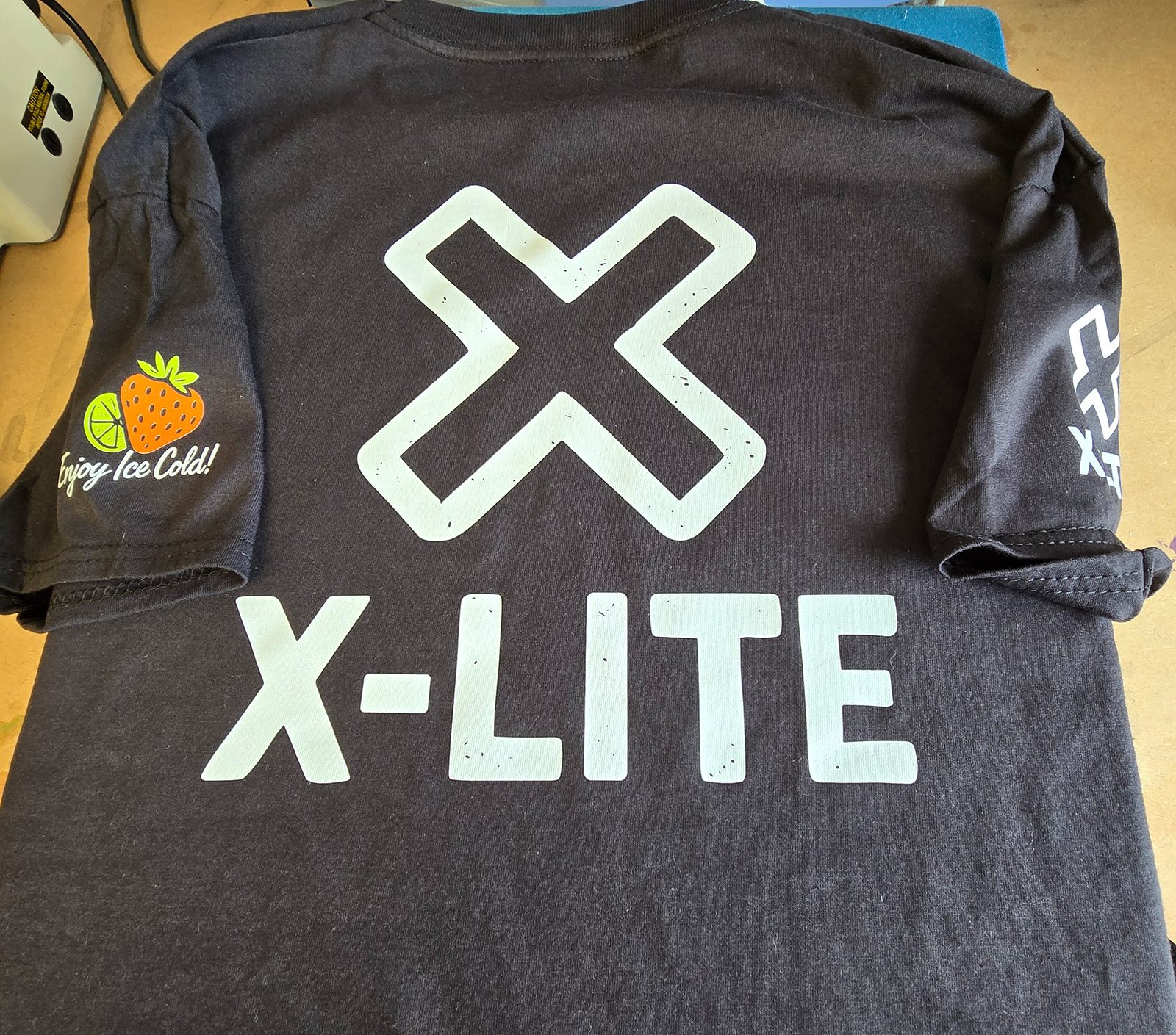 We print DTF on T-shirts, hoodies, polos, hi-vis vests, jackets, caps, bags and promotional textiles. DTF works on light and dark fabrics and is ideal for detailed, full-colour logos.